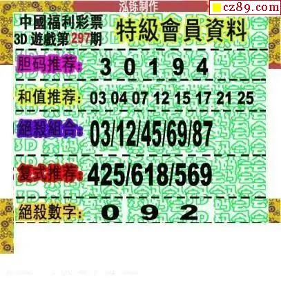 鸿铄图2025297期3d图谜