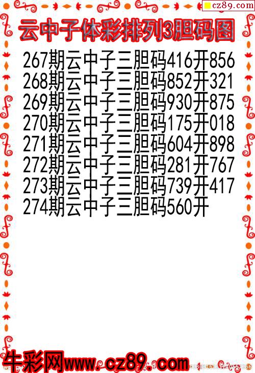 > 25年274期云中子体彩排列3胆码图
